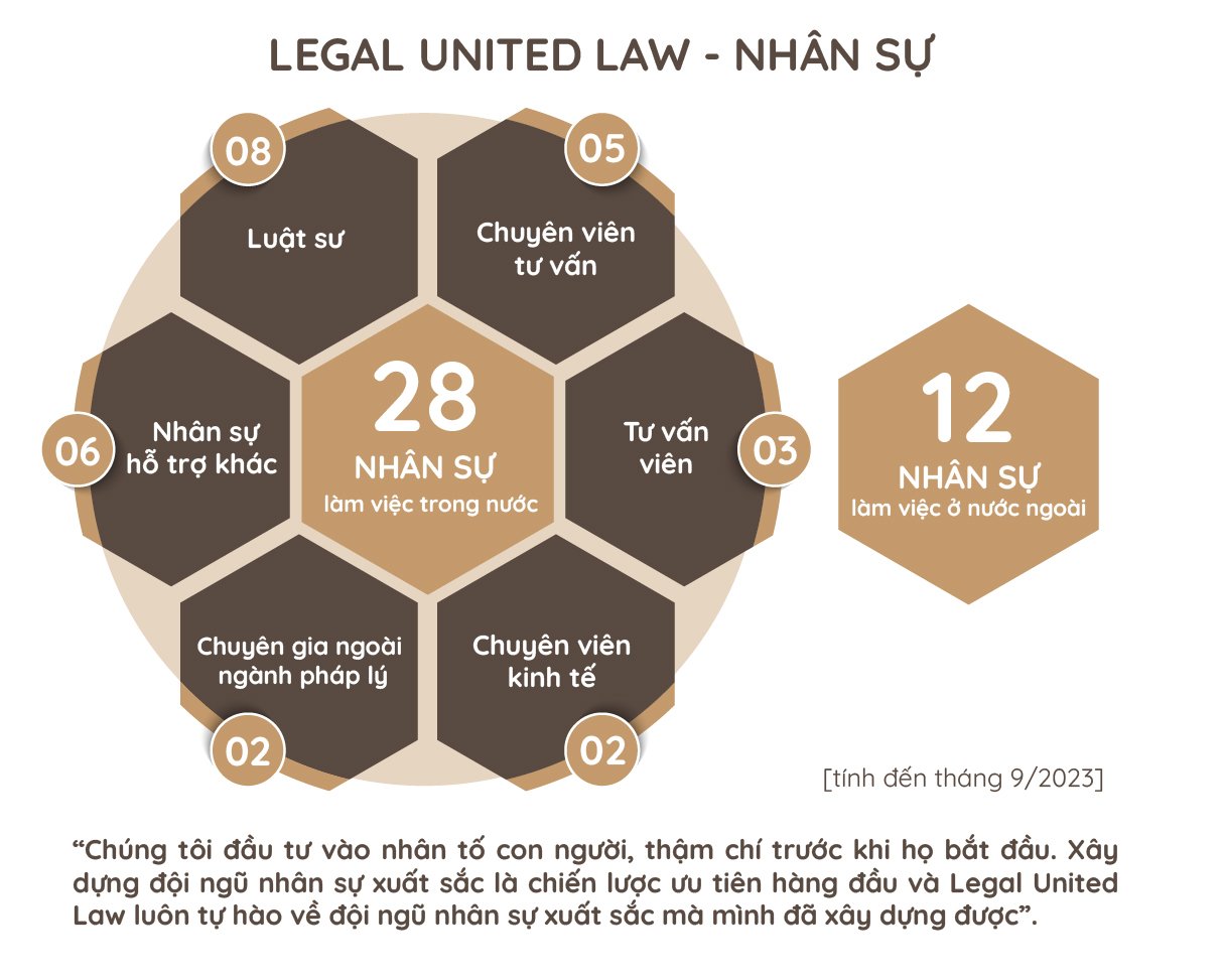Legal United Law với các nhân sự có khả năng – những cá nhân có năng lực để nhận các giao phó nhằm cung cấp dịch vụ và phục vụ tới khách hàng. Chúng tôi quan niệm rằng, chất lượng về nhân sự sẽ quyết định chất lượng dịch vụ và tạo dựng, duy trì niềm tin của khách hàng.